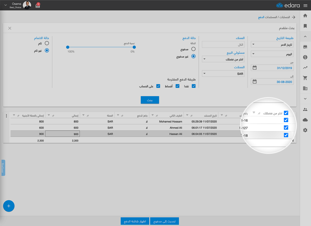 استلام دفعات مالية على كل أمر بيع على حدة أمر مرهق، خاصة عند ارتفاع حجم مبيعاتك اليوميّ. مع "إدارة" يمكنك استلام الدفعات المالية لعدد من أوامر البيع بشكل مجمع.
